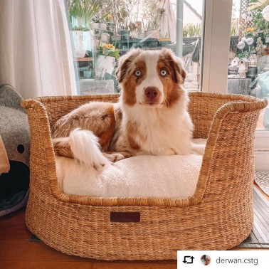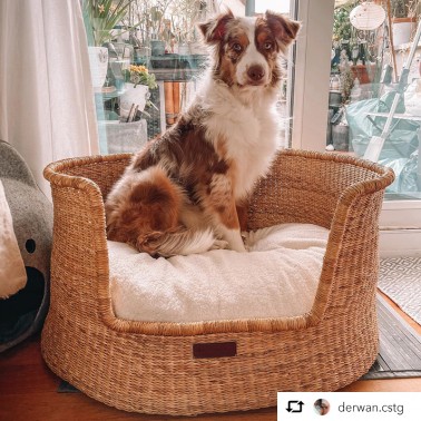 Tissé entièrement à la main, Bagane vous emmène en voyage avec le panier pour chien Frafra. Fabriqué en herbes naturelles, ce panier est véritable objet déco à lui seul et d'une qualité exceptionnelle. Equitable, il est livré avec un moelleux coussin ajusté recouvert d'un tissu bouclette qui assure un confort maximal à votre animal.