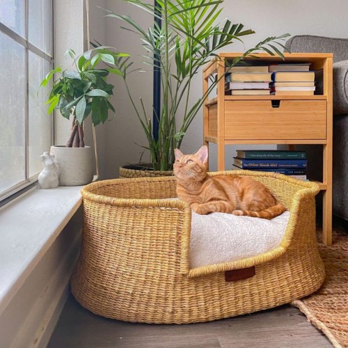 Frafra - Panier design pour chien / chat en herbe naturelle