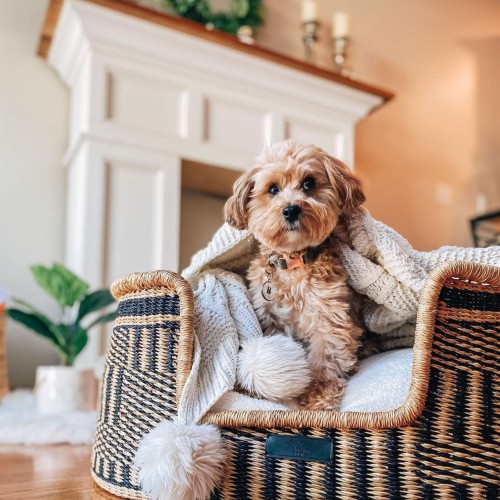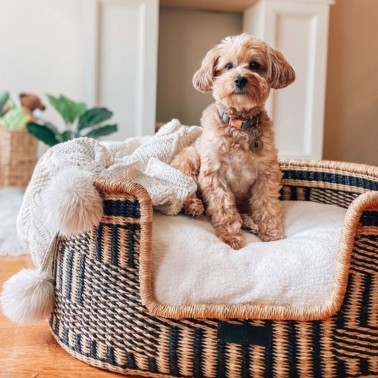 Un élégant panier tressé pour chien au style bohème