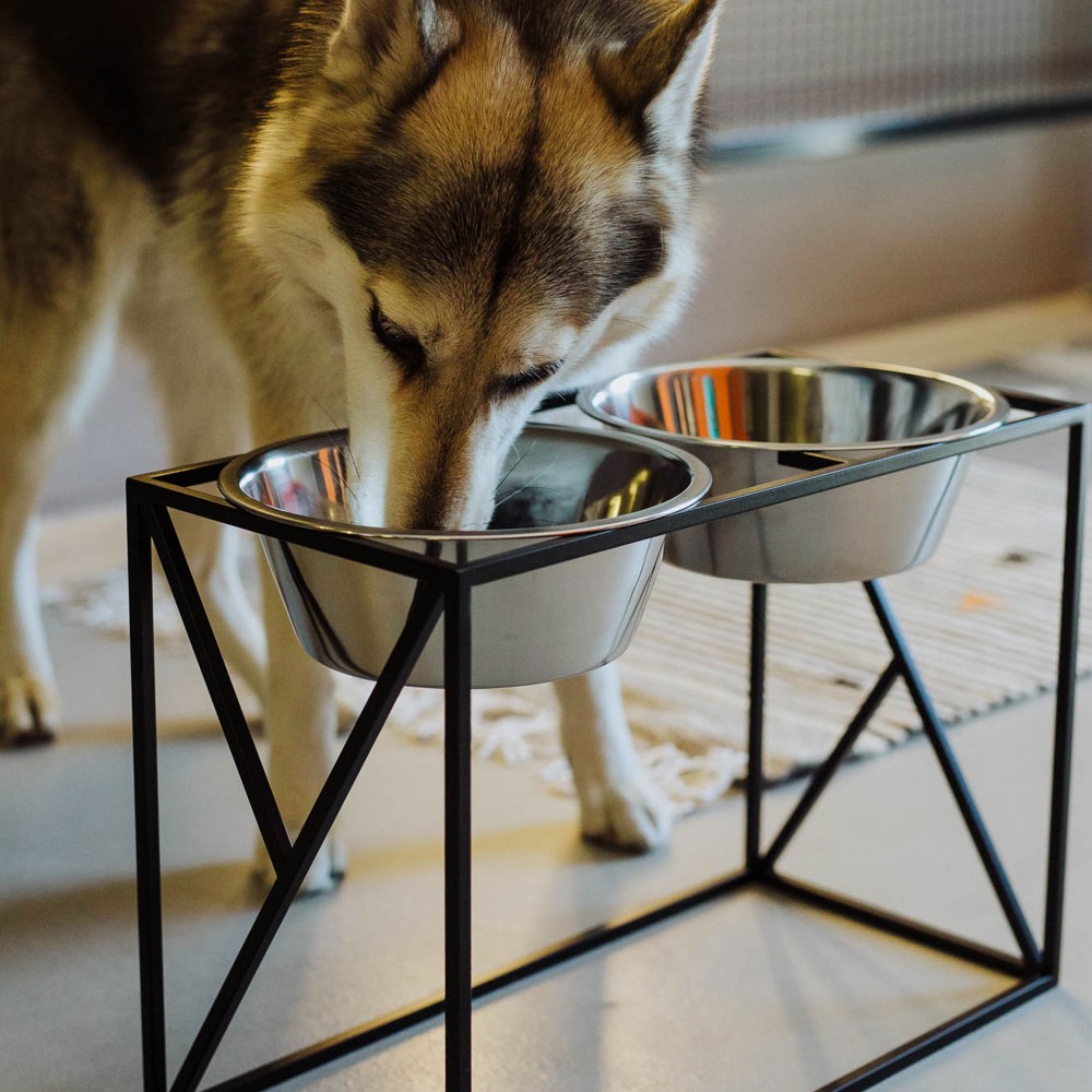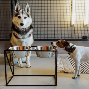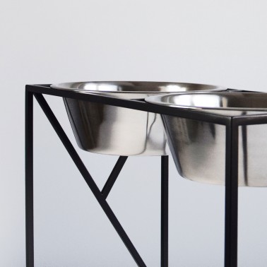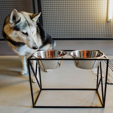 Yumi - Set de 2 gamelles surélevées pour grand chien en acier et socle design métal noir