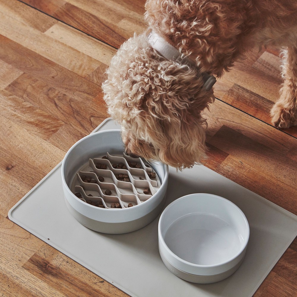 Miacara Coppa - Gamelle design pour chien en porcelaine, socle silicone greige