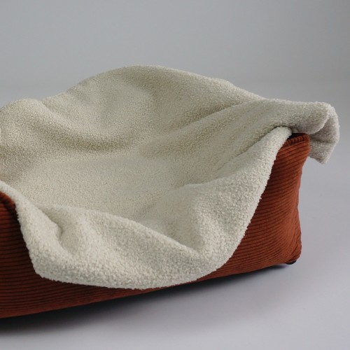 Bastille - Panier pour chien / chat de luxe, orthopédique et déhoussable, en velours côtelé Rouille