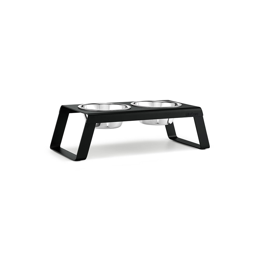 MiaCara Desco - Set de 2 gamelles pour chien surélevées en acier, socle métal noir