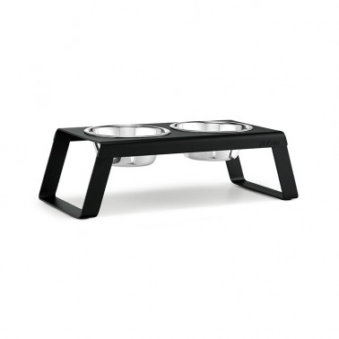 D’une fabrication soignée, la gamelle design pour chien MiaCara Desco associe deux bols en inox et un plateau sur-élevé en aluminium noir avec finition poudré. Ses matériaux de haute qualité et son design intemporel en font une mangeoire solide et à l’esthétique raffinée.